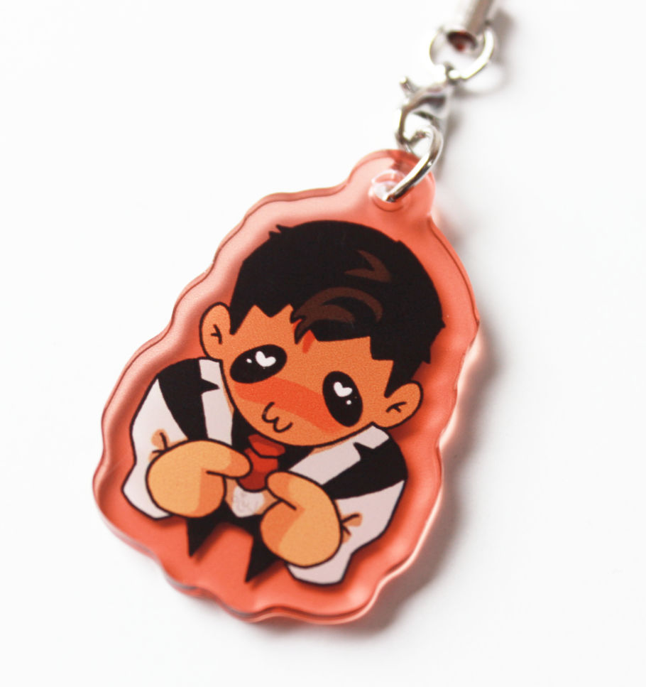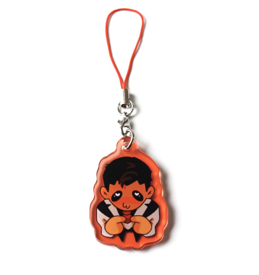 4cm double sided acrylic phone charm on colored acrylic.